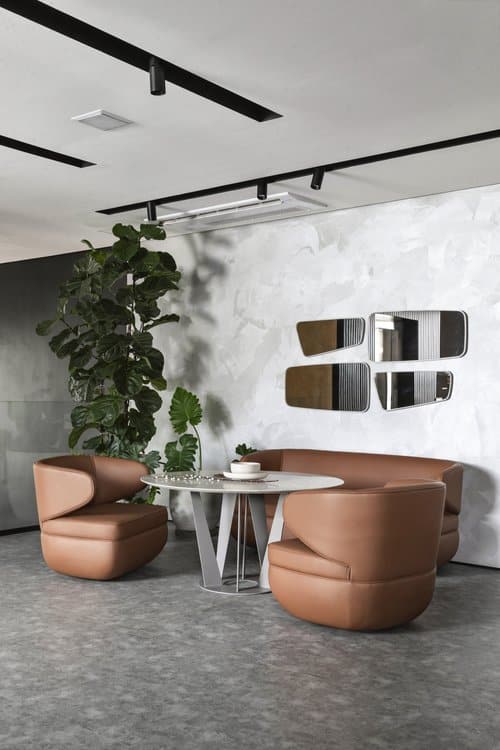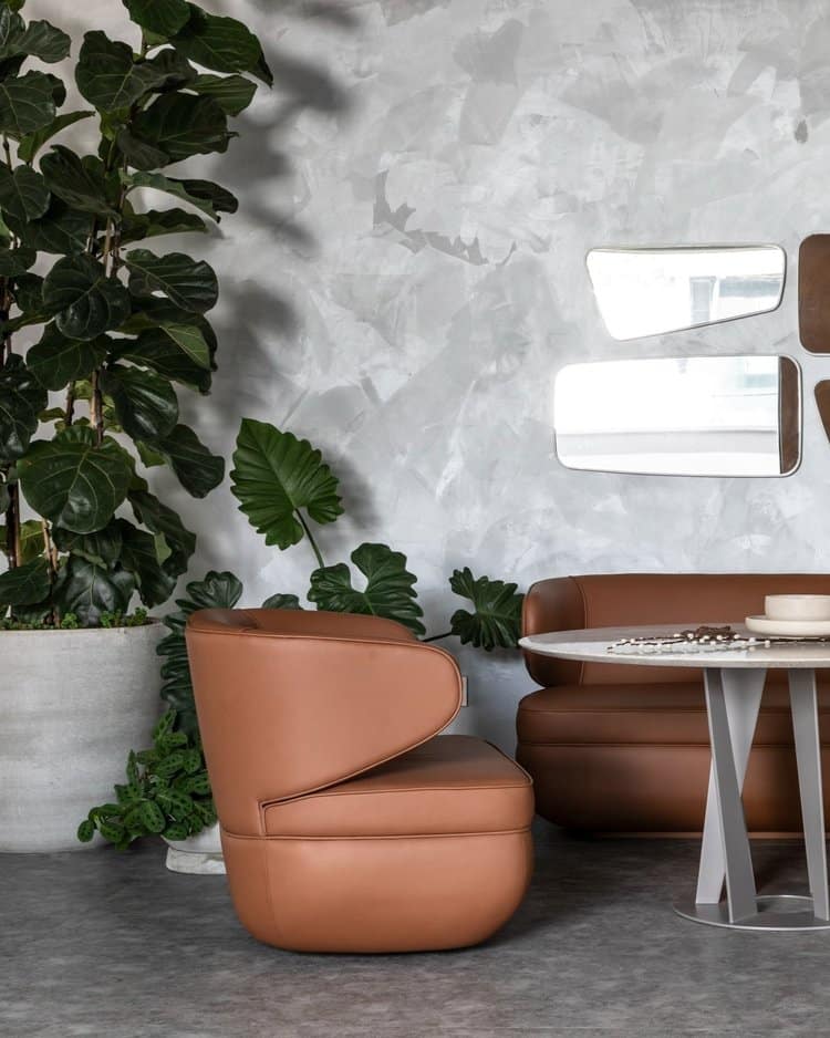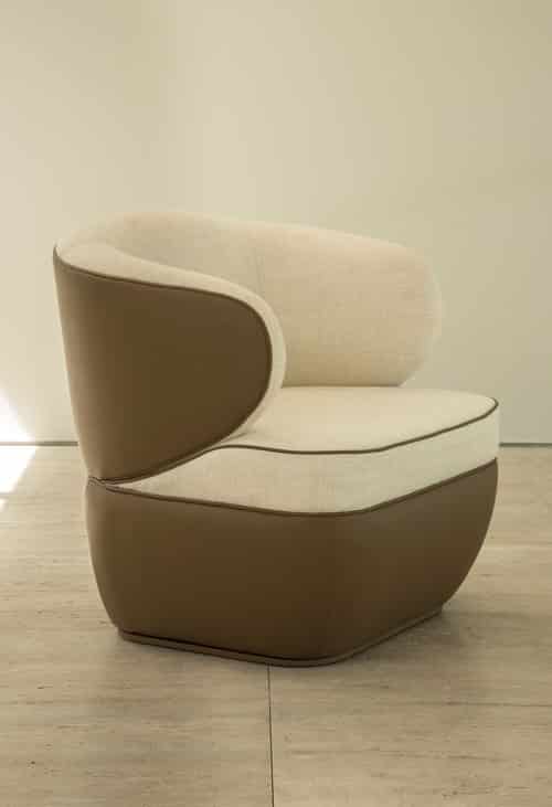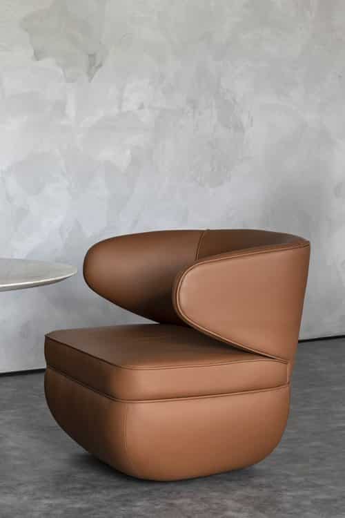 Na linha Ochi, os braços se unem ao encosto de cadeira, poltrona e sofá, formando um apoio ergonômico e de muita elegância. O material utilizado nos estofados – couro ou pele de pirarucu – proporciona aprazível sensação devido ao toque suave. As peças abraçam o corpo em um explícito convite a experimentar conforto, delicadeza e estabilidade, tudo ao mesmo tempo.