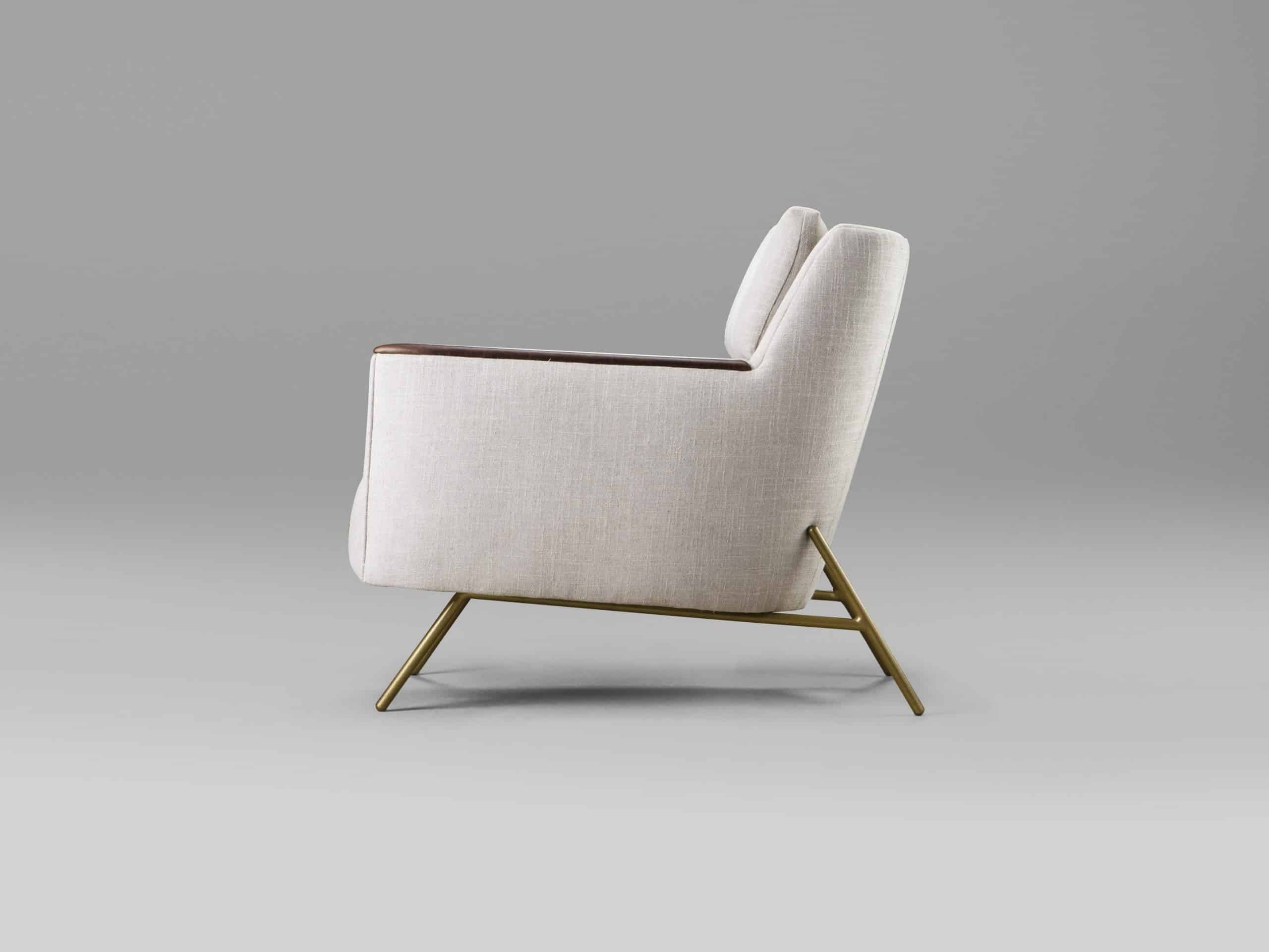 Com design moderno, a Poltrona Pillow se destaca pela riqueza dos detalhes. O apoio dos braços em couro e as almofadas segmentadas horizontalmente, proporcionam mais conforto; e os pés metálicos aparentes na parte posterior da poltrona, lhe conferem uma personalidade única. A poltrona Pillow uma peça-chave que garante conforto e aconchego ao ambiente.