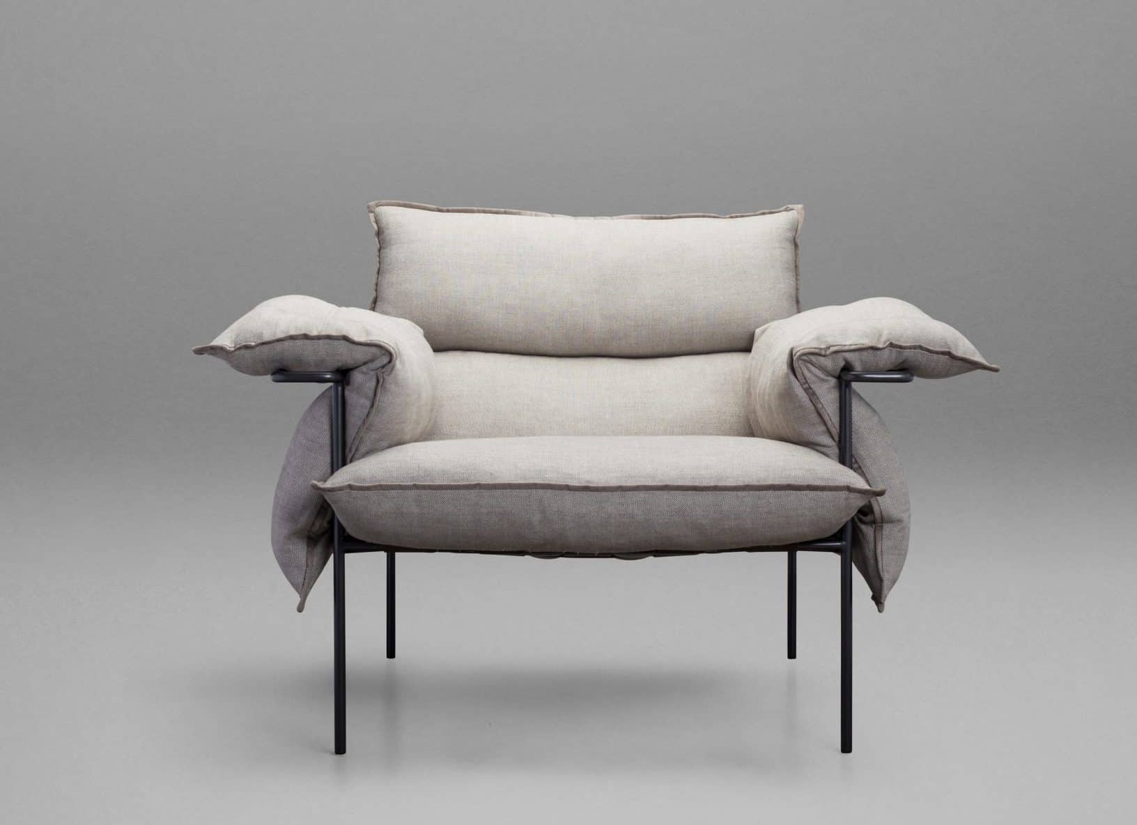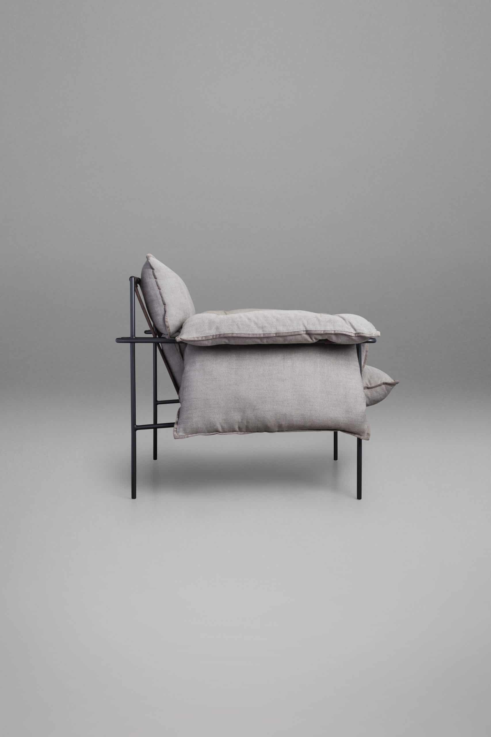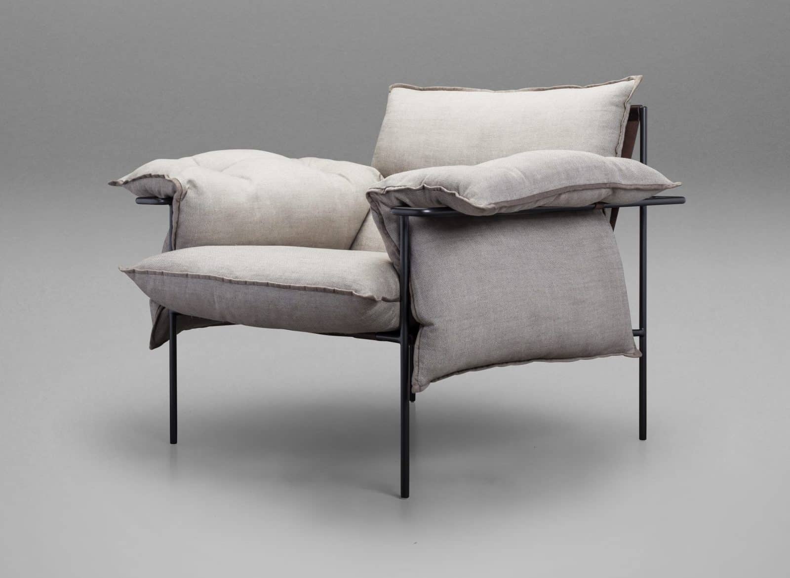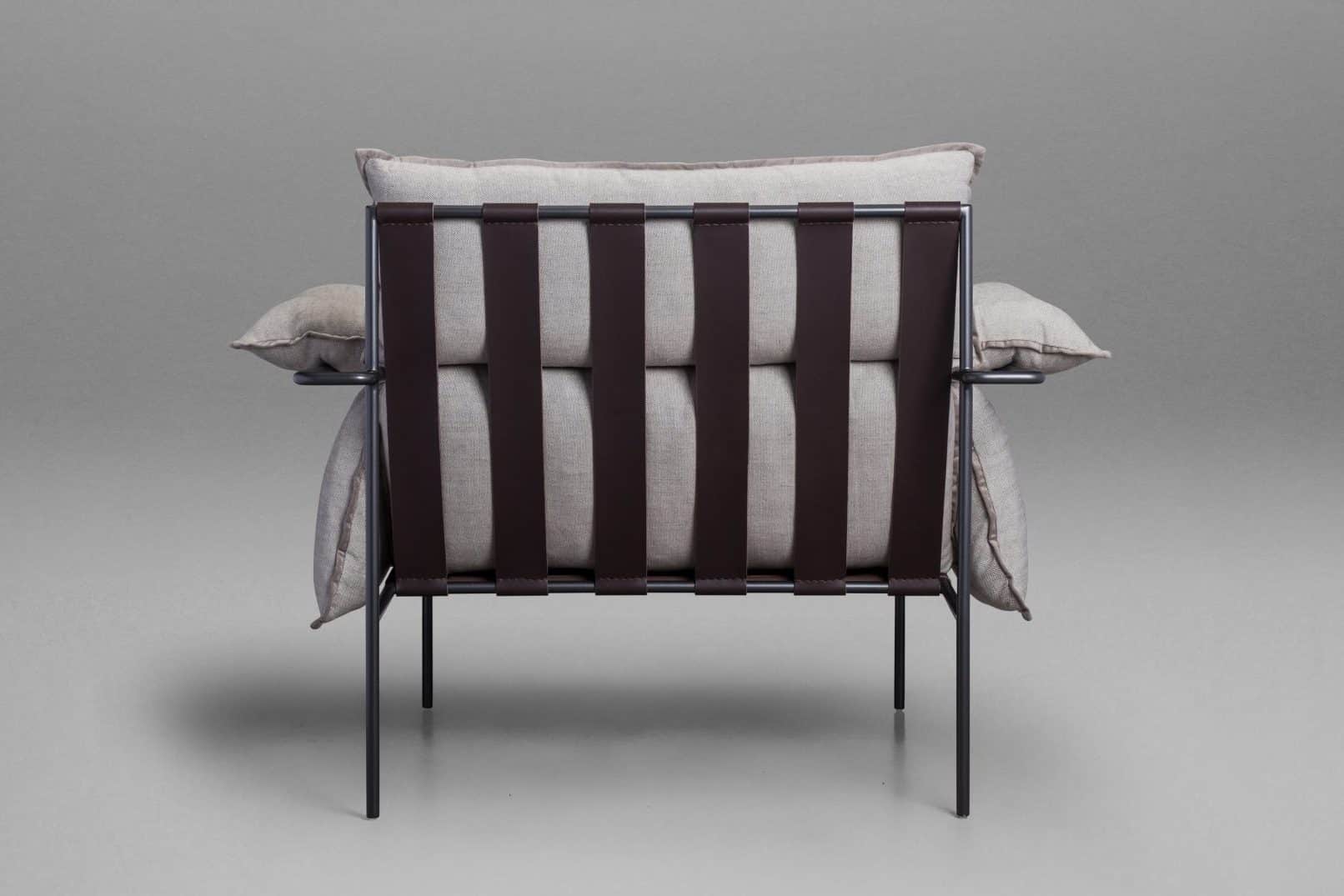 A Poltrona Soft alinha conforto e elegância em seu design. Com desenho vanguardista, causa uma agradável experiência aos olhos e ao corpo, através de seu assento e encosto estofados. É uma clara releitura do design brasileiro das décadas de 50 e 60, associando elementos contemporâneos através de sua estrutura metálica tubular e tiras de sustentação em couro.