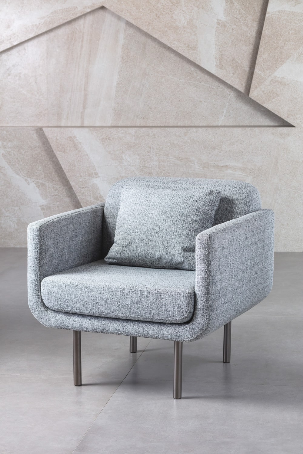 Pés em tauari maciço e concha estofada.