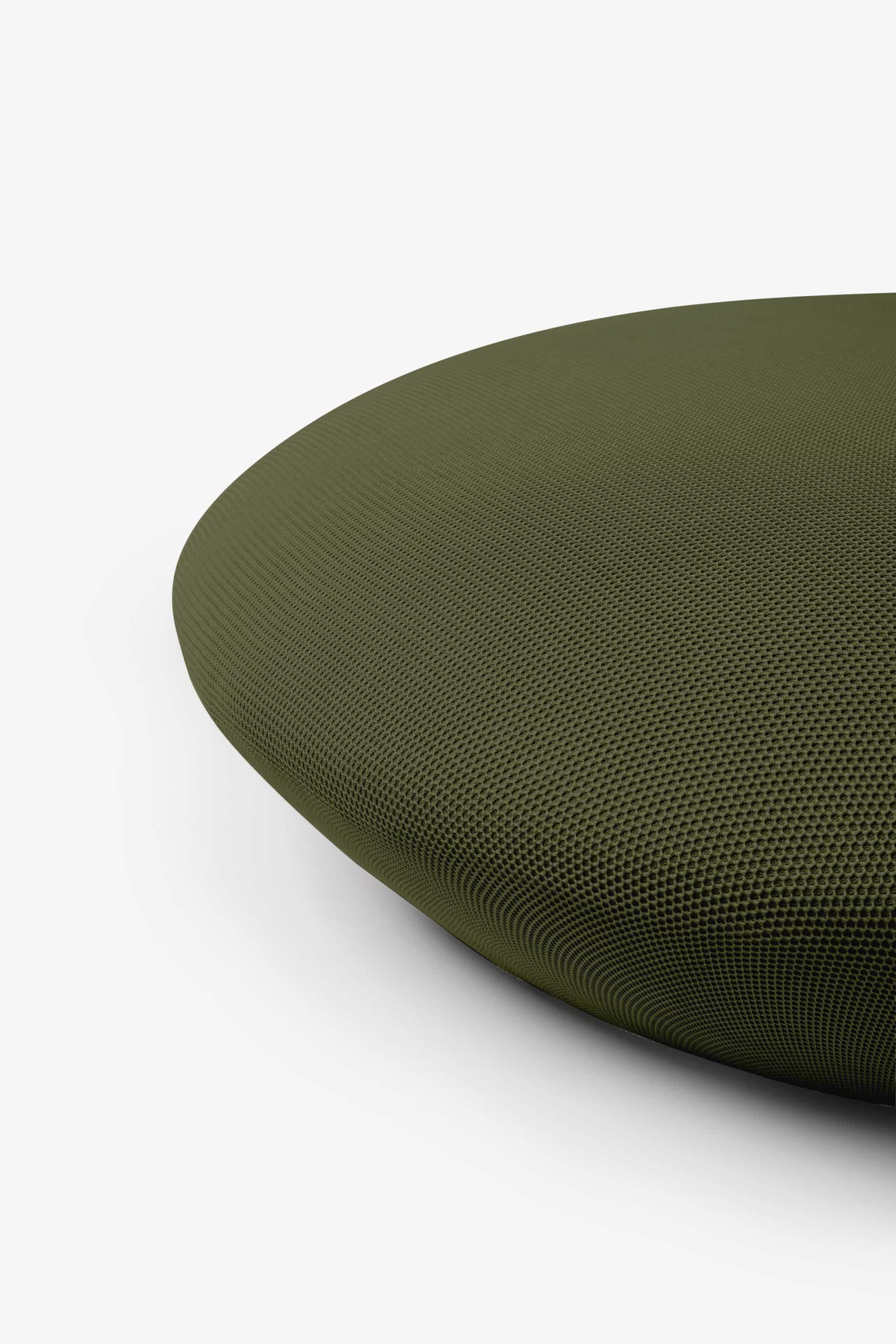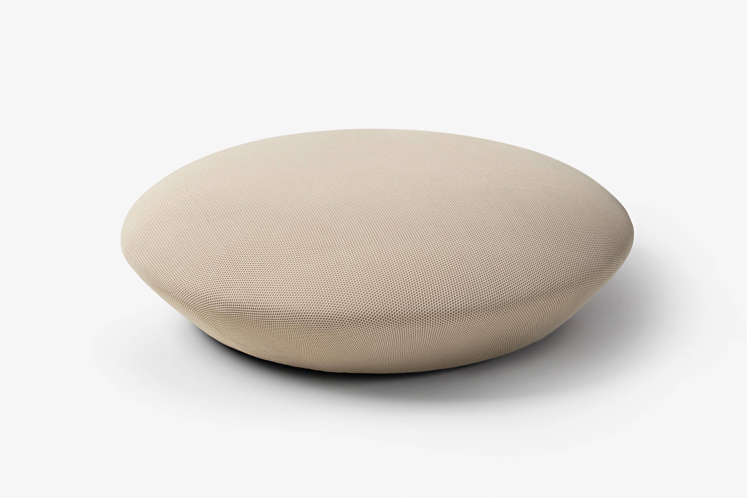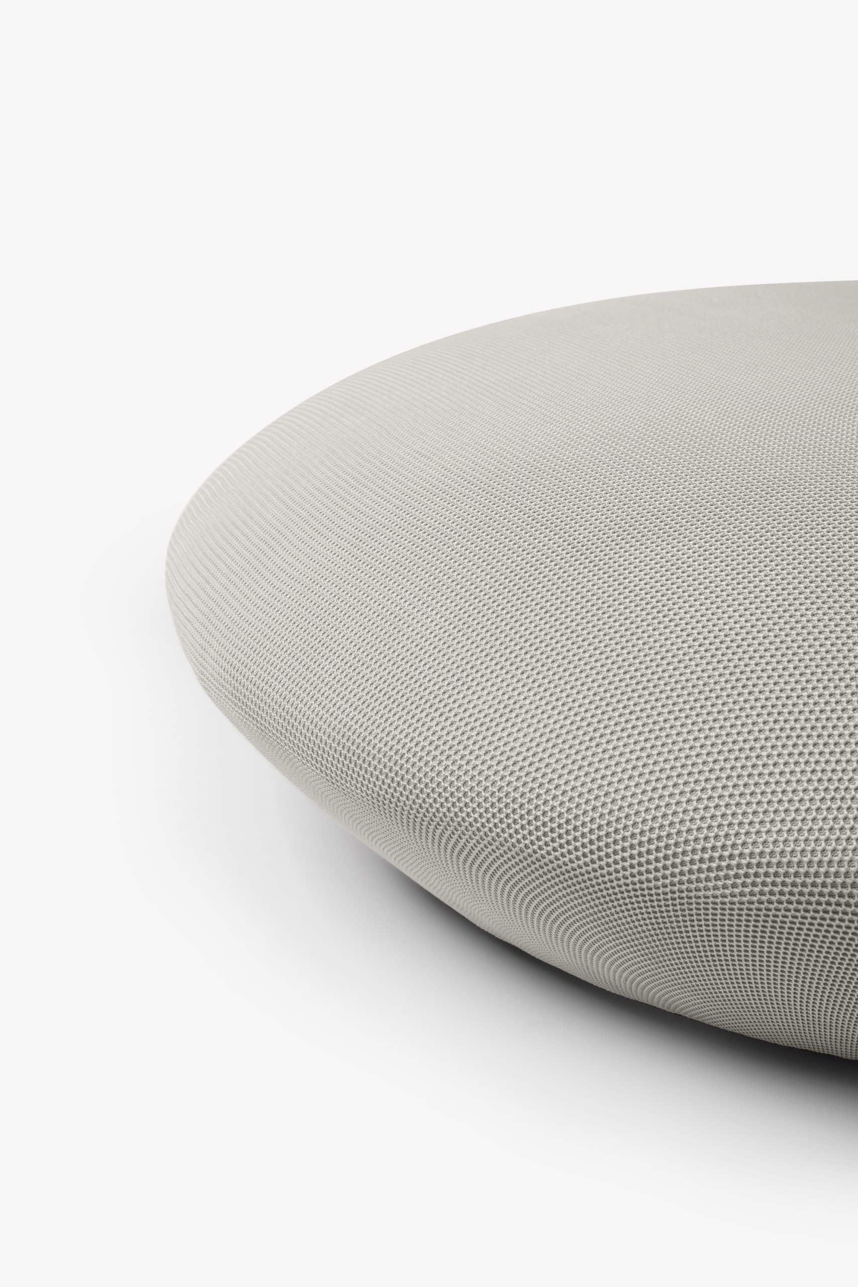 O pufe Baixo segue a estrutura circular e próxima ao chão da poltro-na Baixa e o acabamento uniforme sem costuras possibilitado pelo revestimento exclusivo WE— KNIT— malha 3D feita a partir de PET reciclado. Ele pode ser usado tanto como complemento de sofás e poltronas, quanto um assento extra e peça de destaque em uma sala de estar ou lounge.