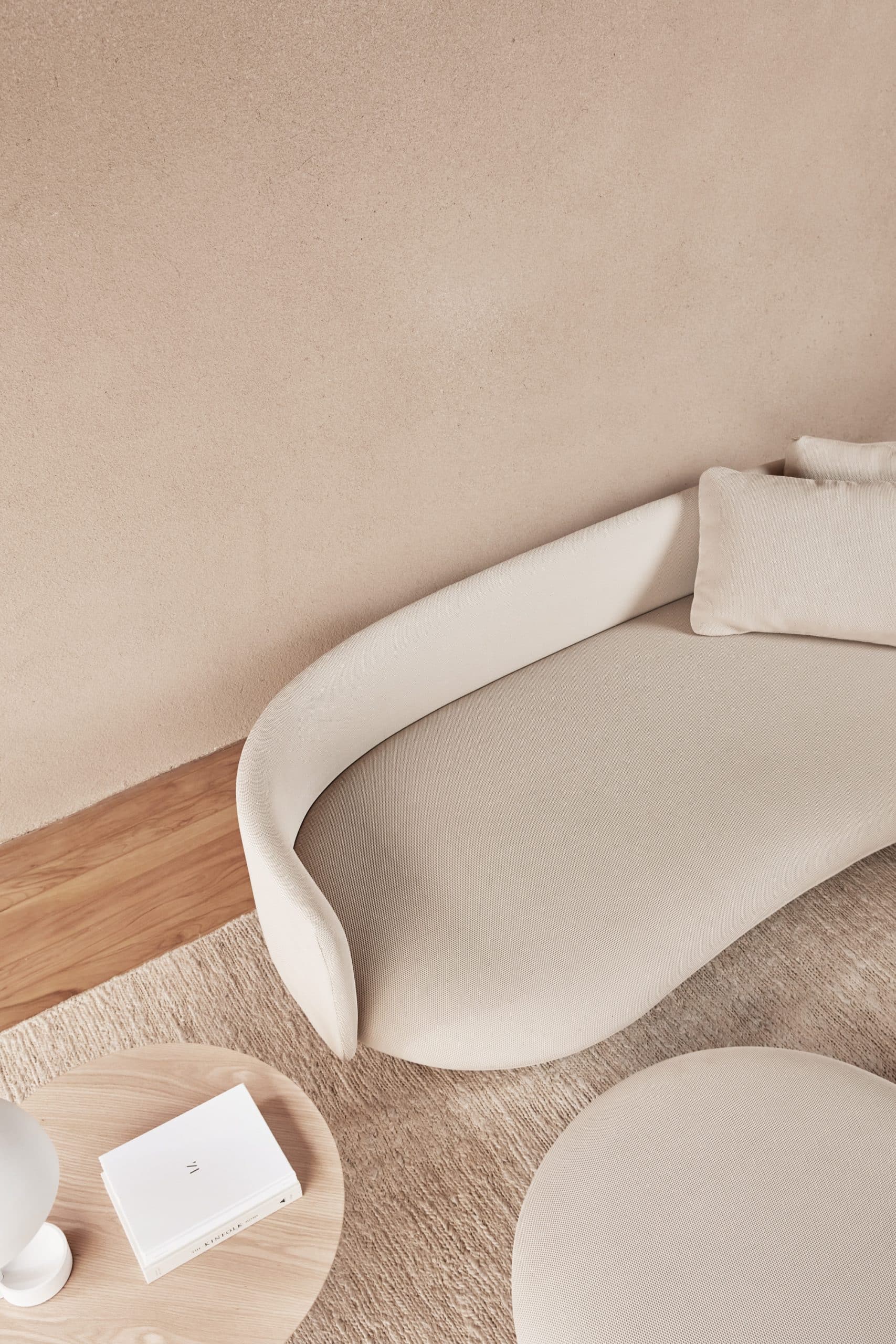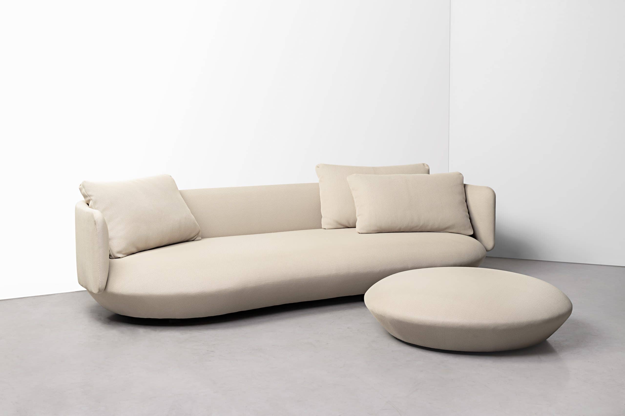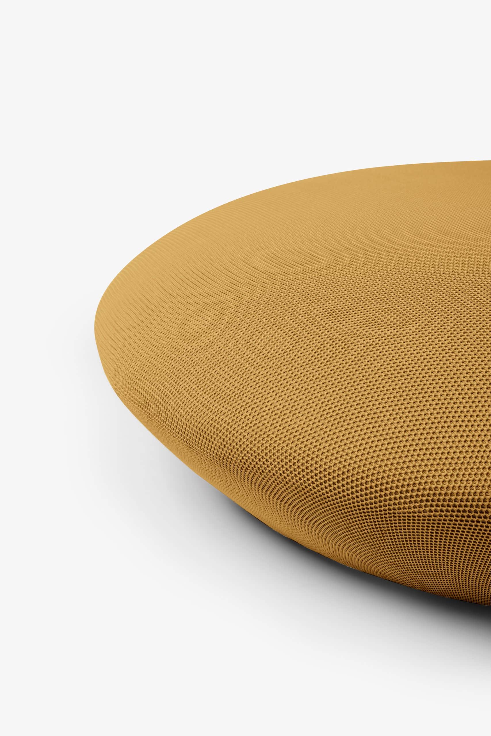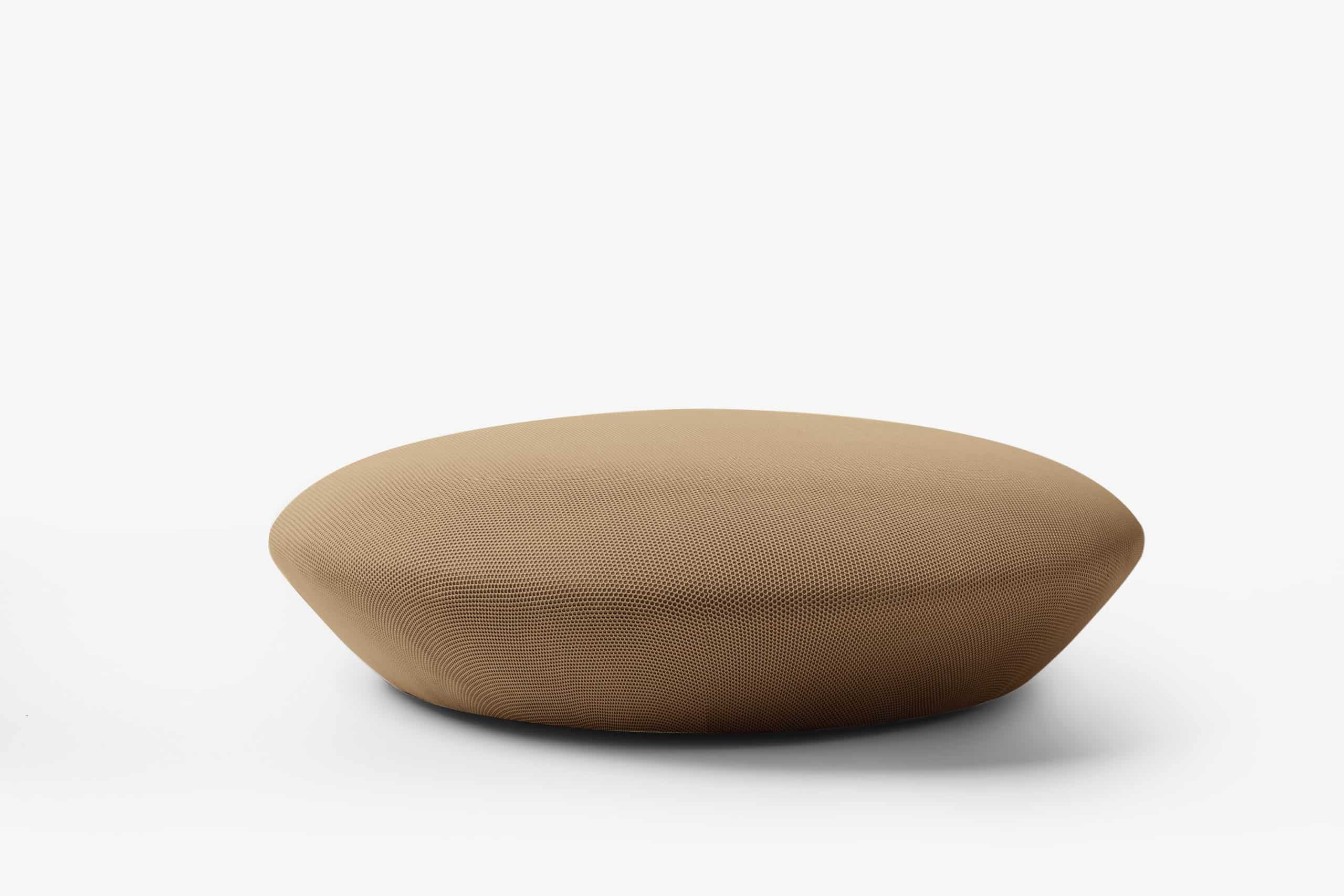 O pufe Baixo segue a estrutura circular e próxima ao chão da poltro-na Baixa e o acabamento uniforme sem costuras possibilitado pelo revestimento exclusivo WE— KNIT— malha 3D feita a partir de PET reciclado. Ele pode ser usado tanto como complemento de sofás e poltronas, quanto um assento extra e peça de destaque em uma sala de estar ou lounge.