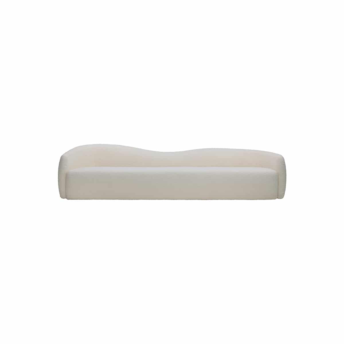 Peça de design orgânico definida por uma silhueta sinuosa e fluida. O encosto de altura variável e contorno ondulado integra-se suavemente aos braços, envolvendo um assento monolítico de base oculta que privilegia a continuidade das formas e a ergonomia escultural.