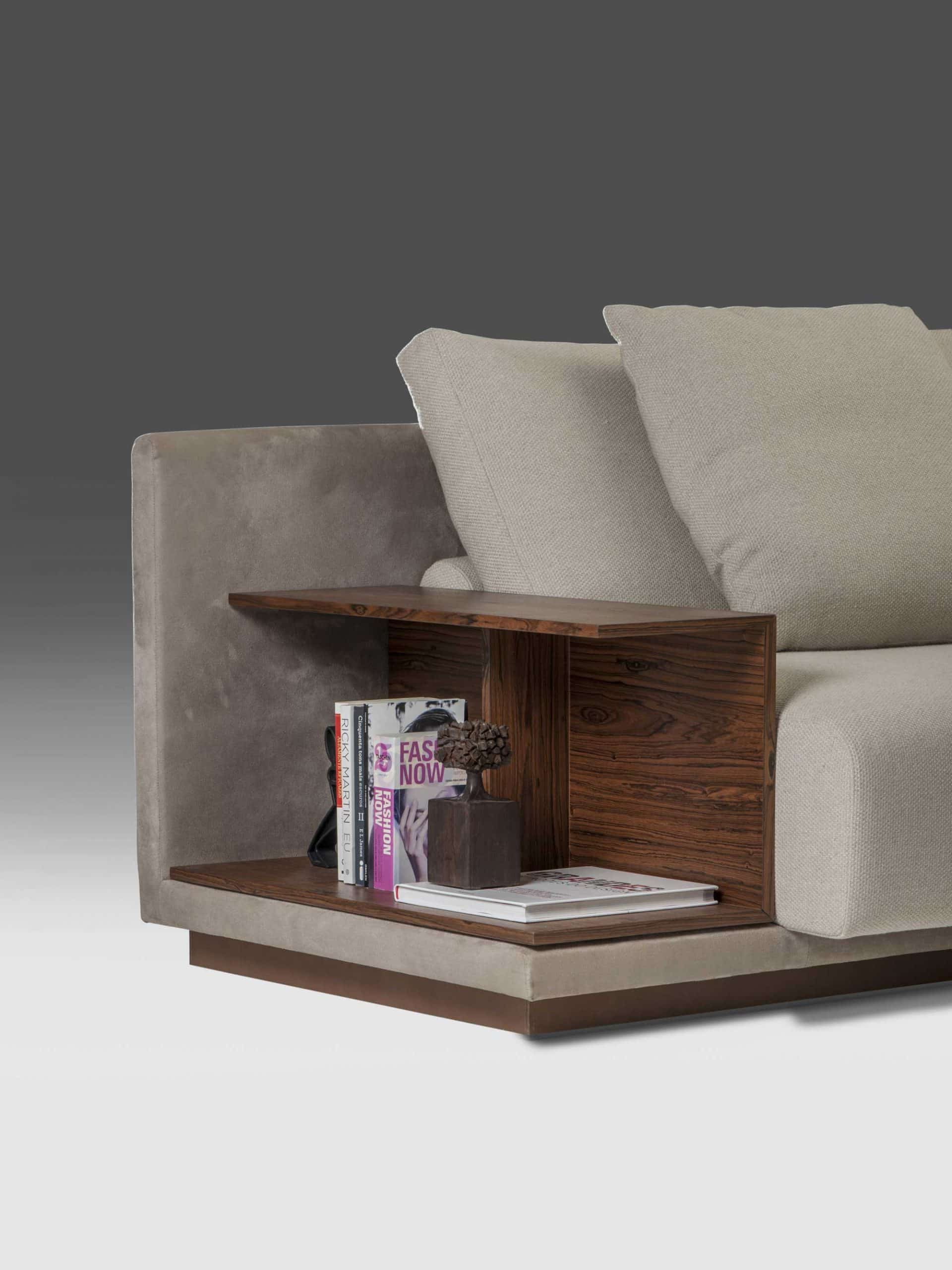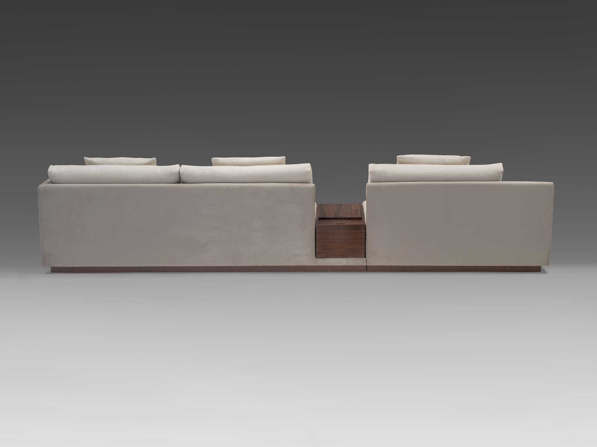 A base e o encosto em peça única, erguidos por um rodapé em madeira laminada, resumem parte do design excepcional do Sofá Lounge. Um sofá que se destaca pelas amplas e confortáveis almofadas de assento e encosto. O braço estante e o nicho em madeira laminada são elementos que completam a composição, criando um ambiente de descontração e aconchego.