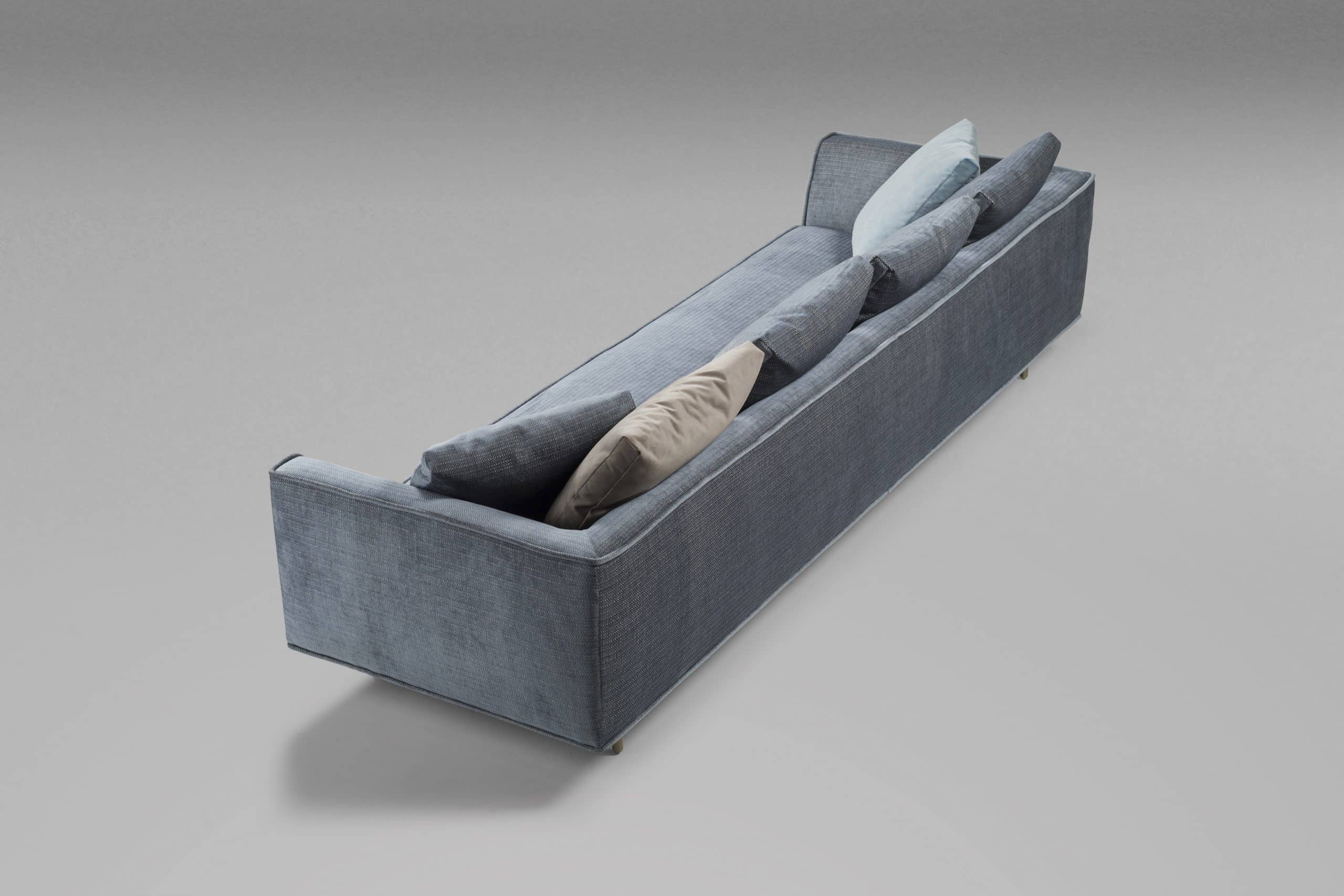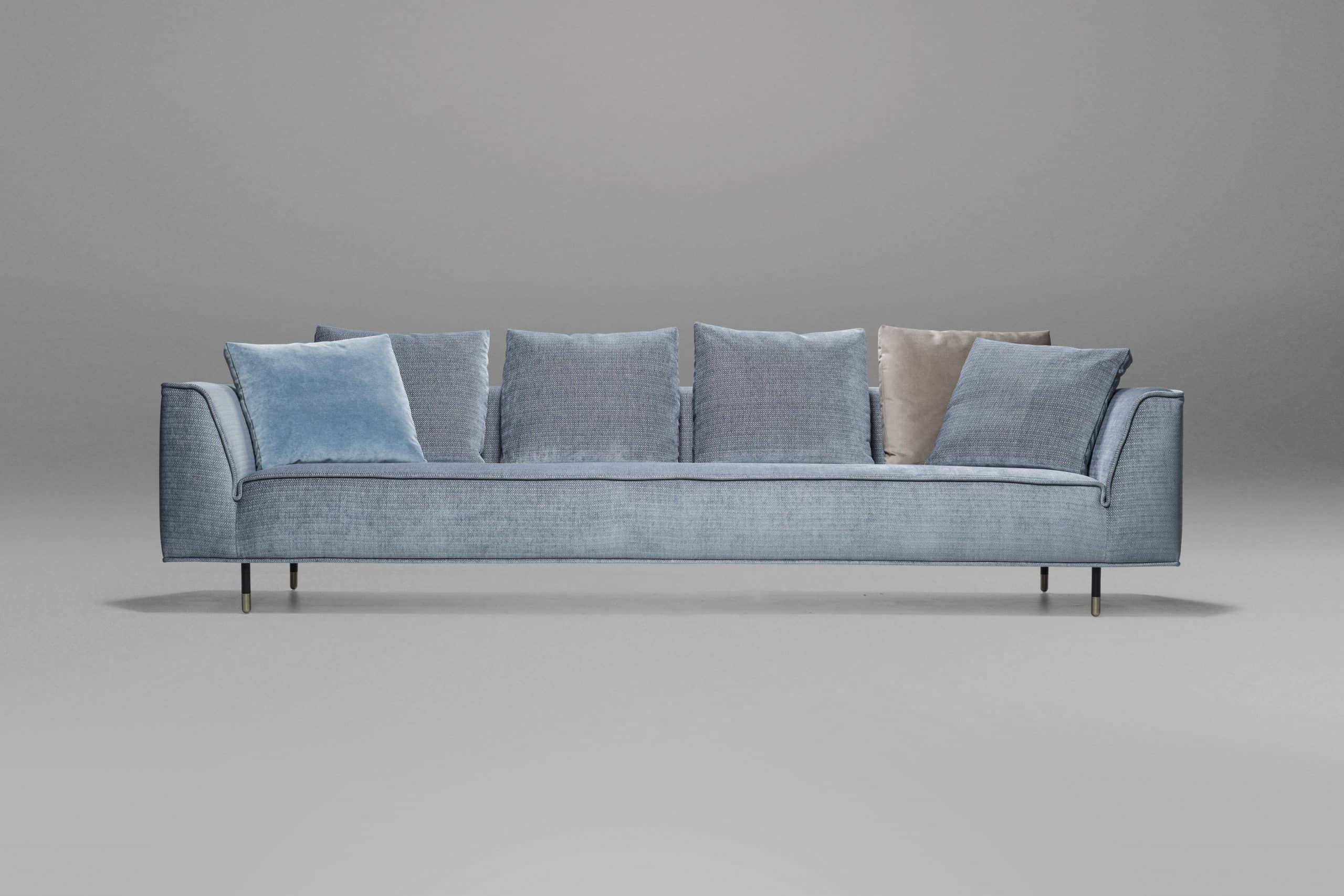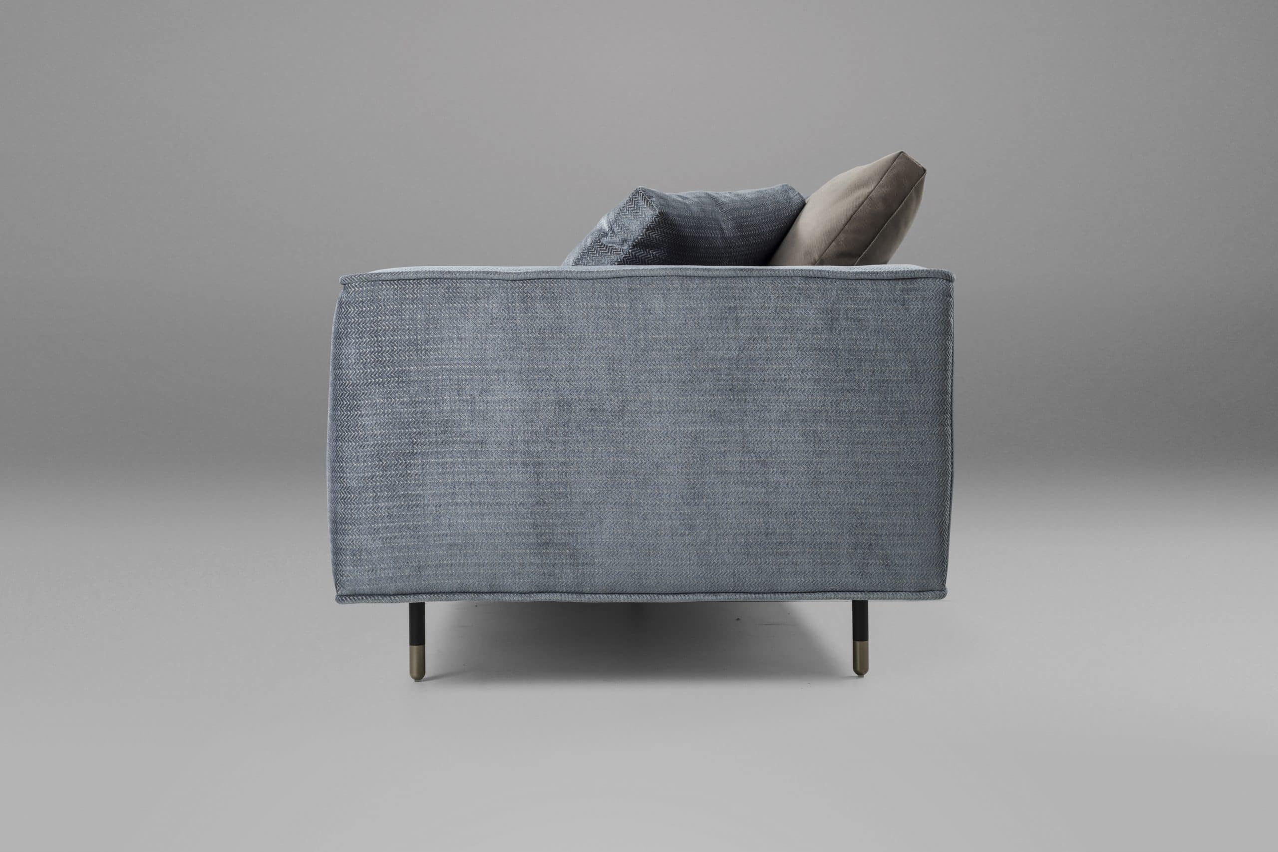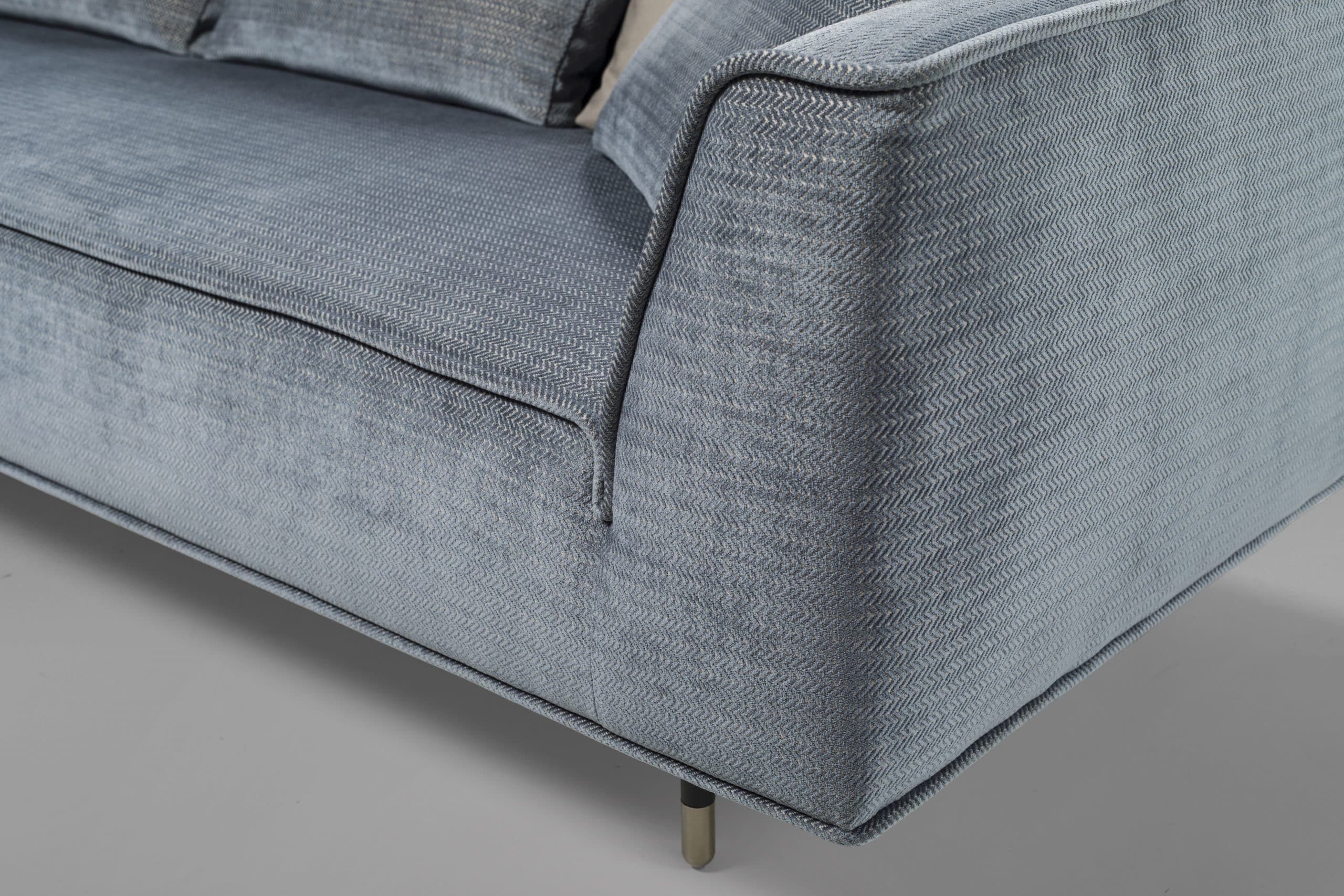 No Sofá Neo Theron, assento, encosto e braços formam um bloco único que tem a forma acentuada pelo acabamento em vivo; uma borda espessa que percorre todo o conjunto evidenciando o conforto e suavidade desse estofado. Os pés metálicos com ponteiras conferem um charme todo especial ao sofá Neo Theron.