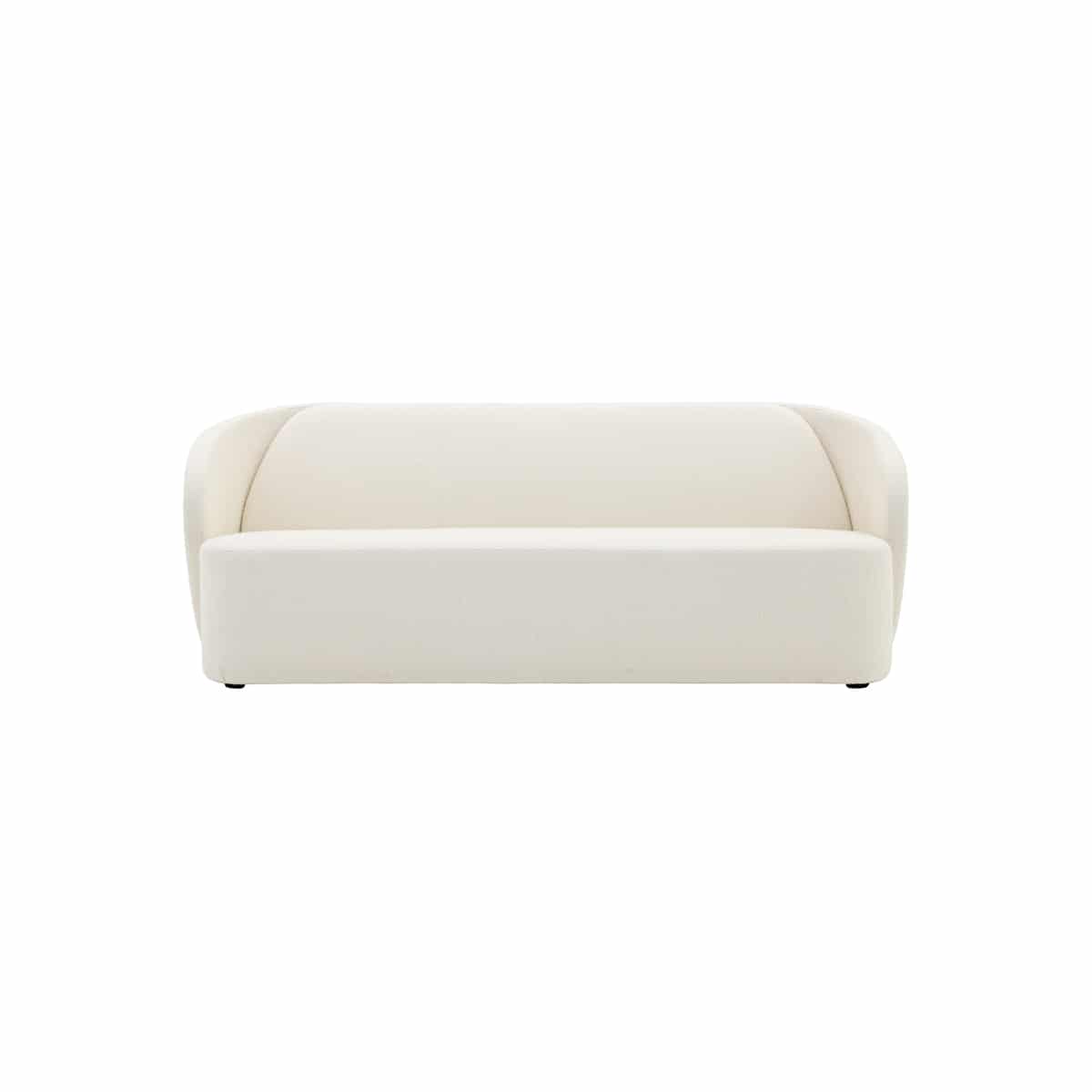 Estrutura de linhas contínuas e volumetria monolítica, definida por um encosto curvo que se integra organicamente aos braços, envolvendo o assento em um único gesto escultórico e minimalista.