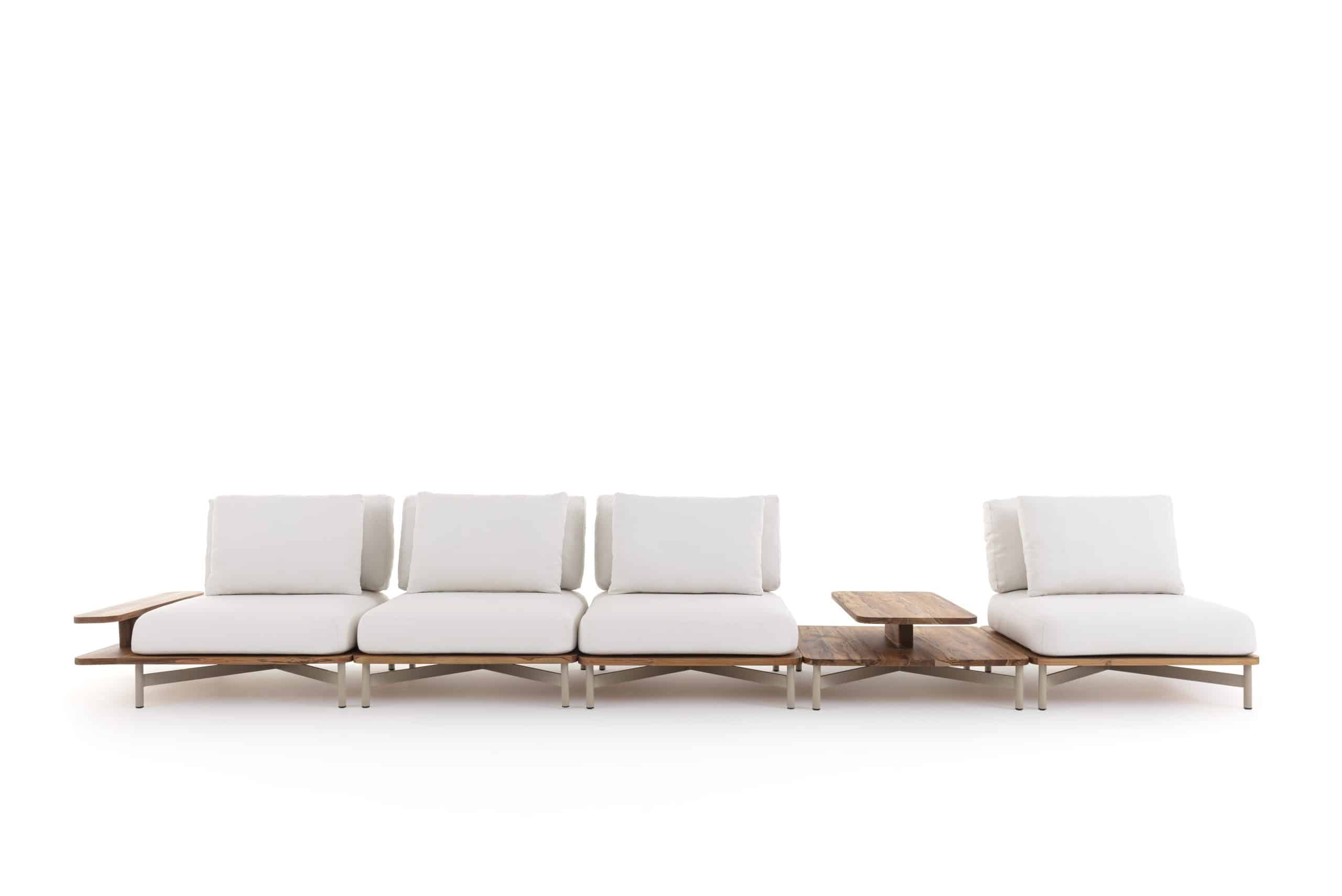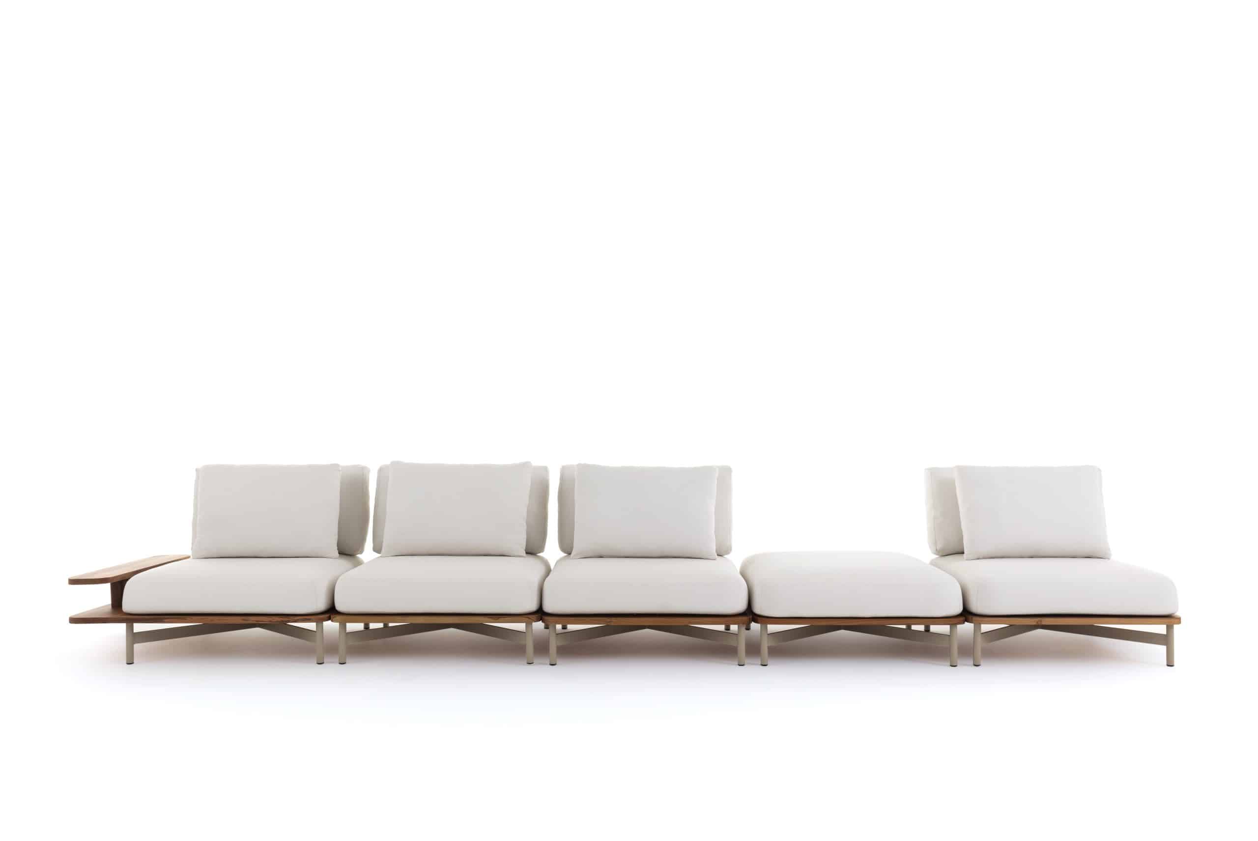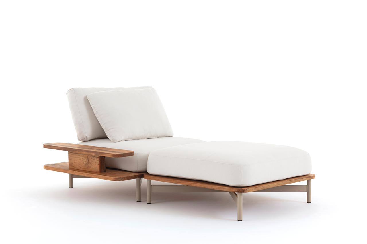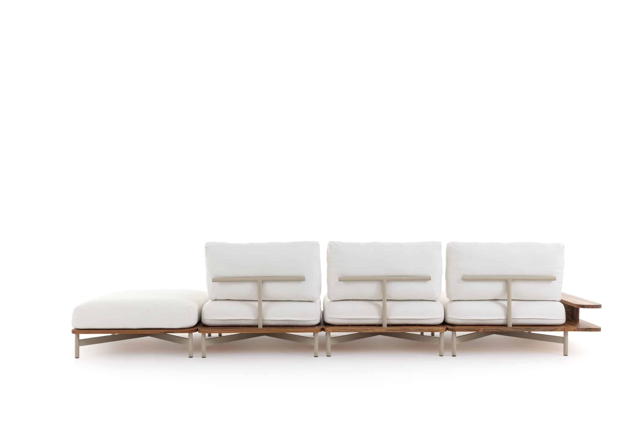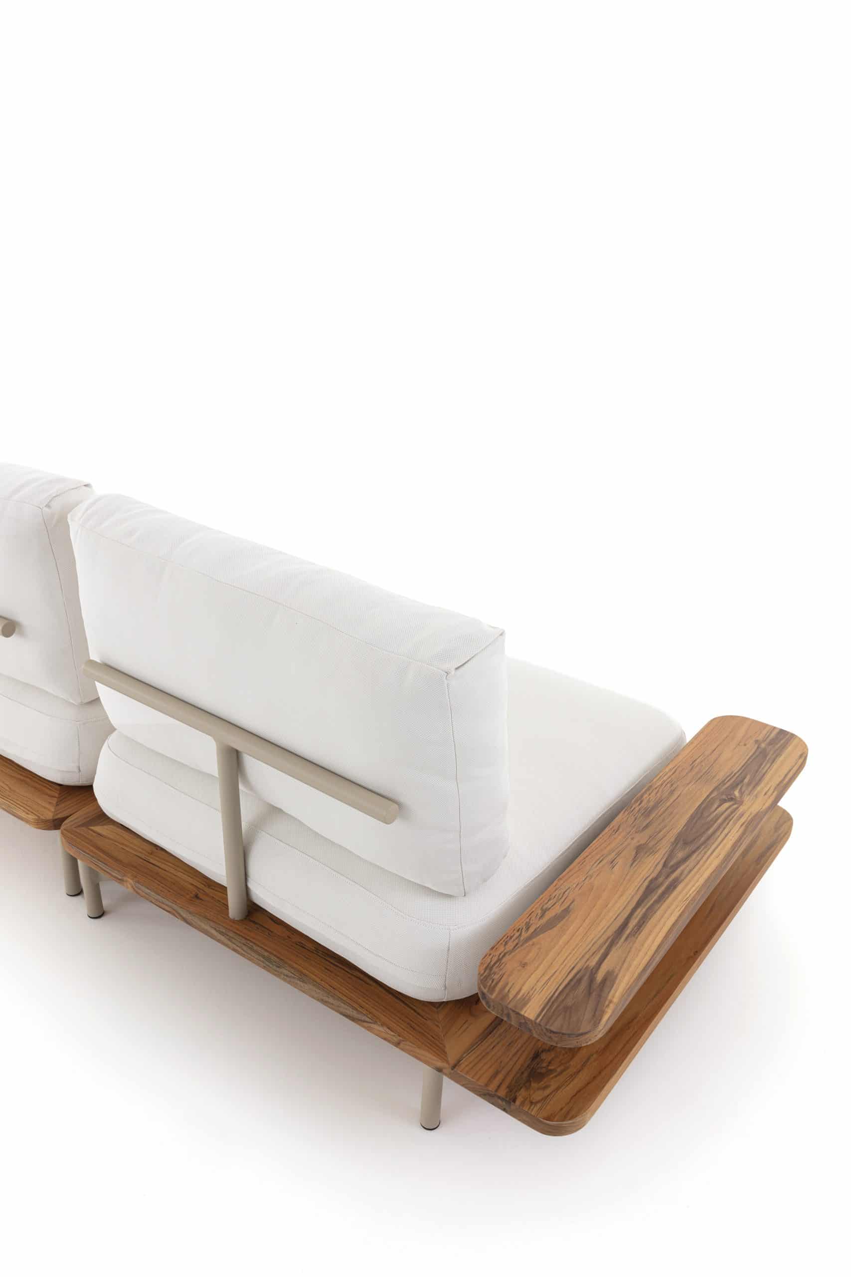 Seu nome nasceu inspirado na sua estrutura de alumínio que forma a letra T. Seus materiais são próprios para área externa como: alumínio, madeira Teca e espuma suíças.