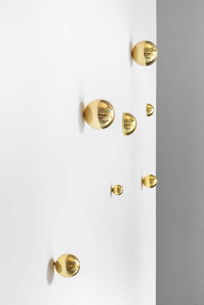 Os espelhos esféricos selfish fazem uma alusão à perfeição, a pressão que temos para estar sempre bem e feliz em frente as redes sociais. Assim como os filtros o latão também rouba a realidade da imagem.